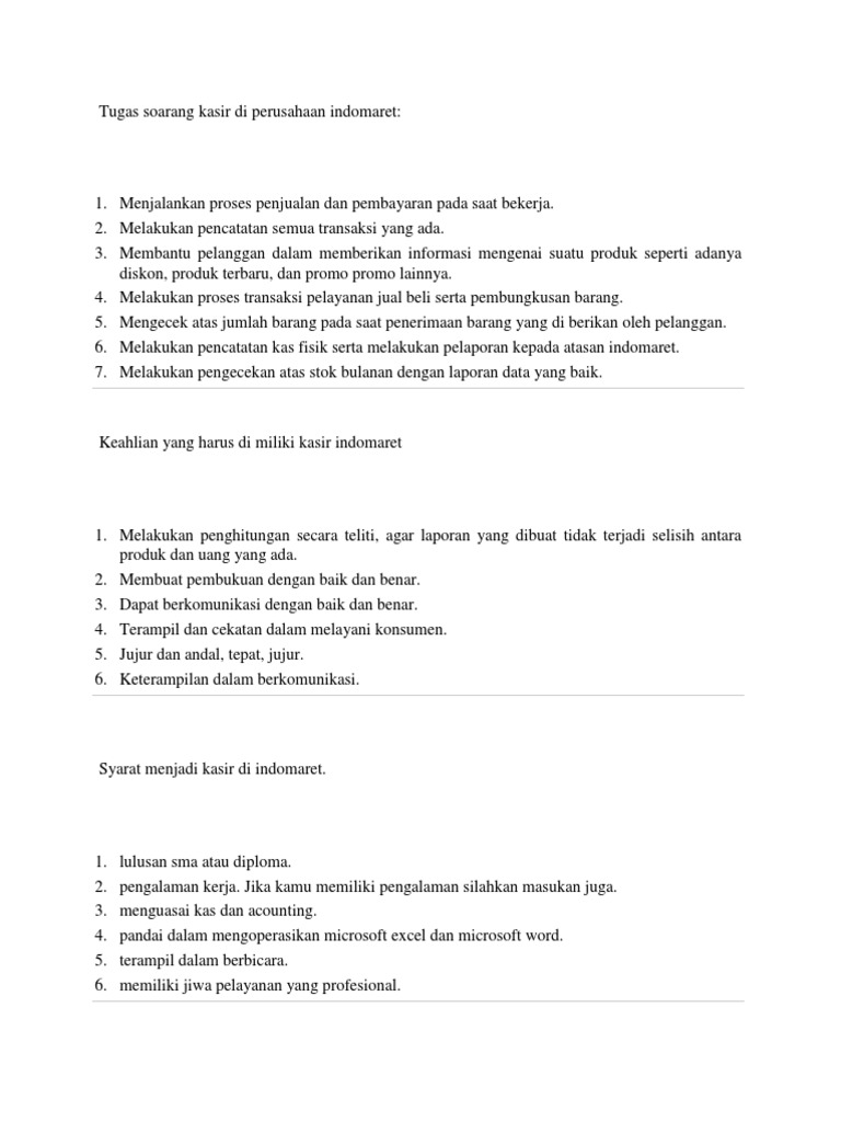 Tugas Soarang Kasir Di Perusahaan Indomaret Pdf